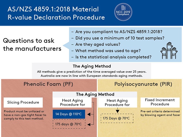 更新了导热值(R值)的计算和声明方式。修订后的标准AS/NZS 4859.1:2018的大变化与热试验和性能标签的正式声明有关:热测试:对于根据本标准评估的每种材料,需要对至少10个测试结果进行统计评估。该统计评估应根据统计调整的平均值确定测试产品的R值和导热系数,该平均值代表50%的分位数,单侧公差区间的置信度为90%。表示为R50/90或λ50/90。相同的统计评估适用于所有绝缘材料,真空绝缘板除外。
