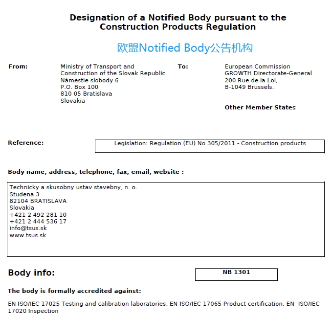 南京睿督公司为欧盟公告号Notified Body实验室授权合作机构,可以直接受理各类建筑产品CE认证及ETA认证