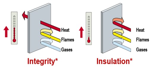 Integrity and insulation criteria measuring the resistance against flames (integrity) and heat (insulation)