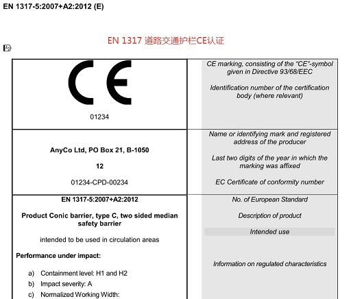 欧盟EN1317道路防护系统CE认证标准(欧盟NB公告实验室CE证书)